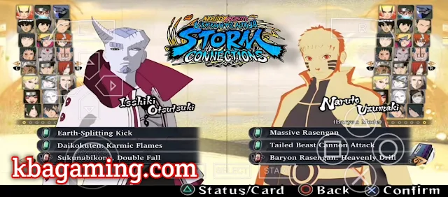 Naruto x Boruto Storm Connection PPSSPP MOD TEXTURES HD vous propose les mêmes menus que le jeu de base Naruto Shippuden - Ultimate Ninja Impact avec de légères modifications de l'apparence adapté à la version officielle de Naruto x Boruto Shippuden - Ultimate Ninja Storm Connection sorti sur PC, Playstation et Xbox.
